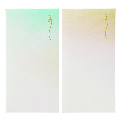 季節や時間とともに移ろう、暮らしの風景。その美しさをやさしく溶け合う色合いで表現したのし袋です。時間による情景の変化を色グラデーションで表現した「朝空」と「夕空」の2柄入りです。