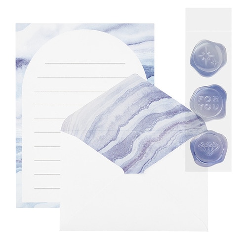 透明で立体的なシーリングワックス風シール付きの、鉱石をイメージしたミニレターです。