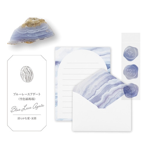 透明で立体的なシーリングワックス風シール付きの、鉱石をイメージしたミニレターです。ブルーレースアゲートのモチーフです。【検索ハッシュタグ】#レター#マルアイ#ミネラ#シーリング#ブルー#ミニ