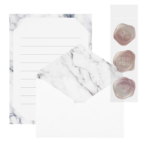 透明で立体的なシーリングワックス風シール付きの、鉱石をイメージしたミニレターです。マーブルのモチーフです。【検索ハッシュタグ】#レター#マルアイ#ミネラ#シーリング#シルバー#ミニ