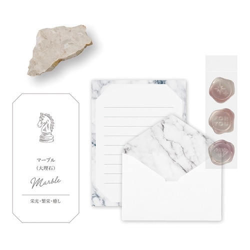 透明で立体的なシーリングワックス風シール付きの、鉱石をイメージしたミニレターです。