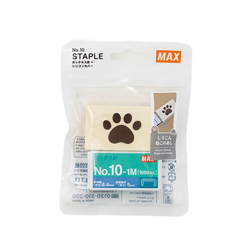 弊社のNo.10-1M、カラー針を箱ごと収納して使える“かわいいケース付きの針”です。ブラウンの肉球デザインで、同時発売のホッチキスと合わせればデスクの上がさらに楽しくなること間違いなしです!