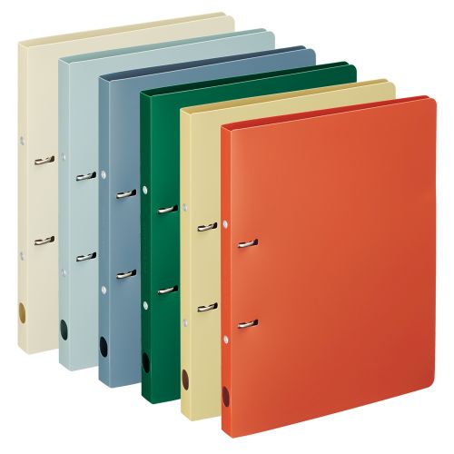リングを時計回りにひねると簡単に開くツイストリングを使用したリングファイルです。リングを高くすることで、同じ背幅のリングファイルより最大収容枚数が30枚アップし、省スペースで収納することができます。