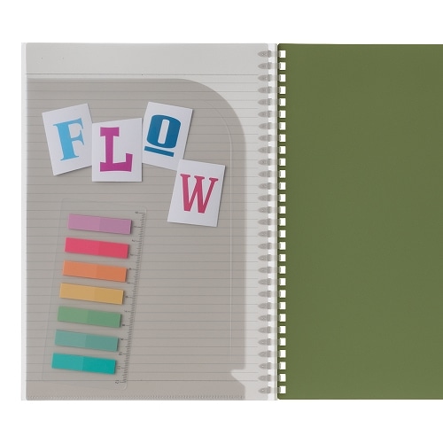 やわらかくて薄いリングは筆記時に手に当たっても気になりにくく、かさばらないので持ち運びに便利です。リングと一体になったオープンポケット付きで、ふせんやシール、カードなどを入れて一緒に持ち運びができます。使い終わったノートのリングをハサミで切ってリーフを取り外し、オープンリングノートやツイストノートにとじることができます。【検索ハッシュタグ】#ソフトリング#ノート#リヒトラブ#使いやすい#新色