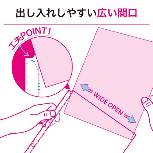 広い間口で出し入れしやすいクリヤーポケット