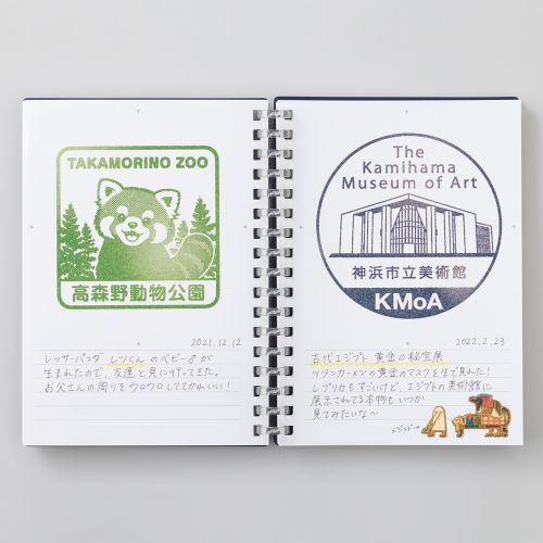 スタンプを押せるリーフが入ったノート。リングを開いてリーフの追加・交換ができる。