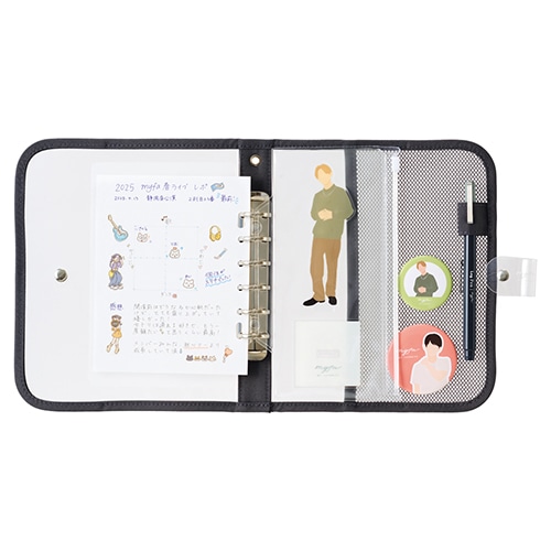 表紙が透明なので、中に収納したお気に入りのコレクションを見せることができます。缶バッジが付けられるメッシュポケット、ペンホルダーが付いております。JIS規格の多穴リーフもとじられるミニ6穴とじ具のバインダーです。背にはキーホルダーが付けられるストラップホールが付いております。着脱しやすい下敷きが付いております。【検索ハッシュタグ】#ライフログ#リヒトラブ#推し活#バインダー