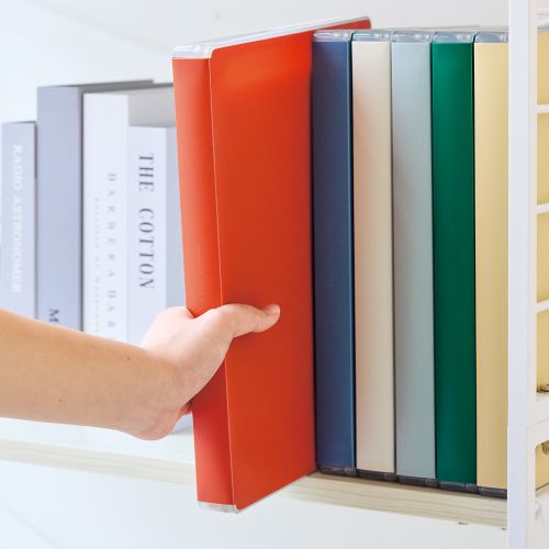 フタが180°フルオープンで開くので、収納物の出し入れがしやすいです。取扱説明書などの冊子をまとめて収納したり、小さなおもちゃや小物を整理して収納するのにおすすめです。本体は適度な厚みがあるので、棚に立てて収納することもできます。