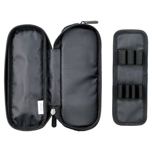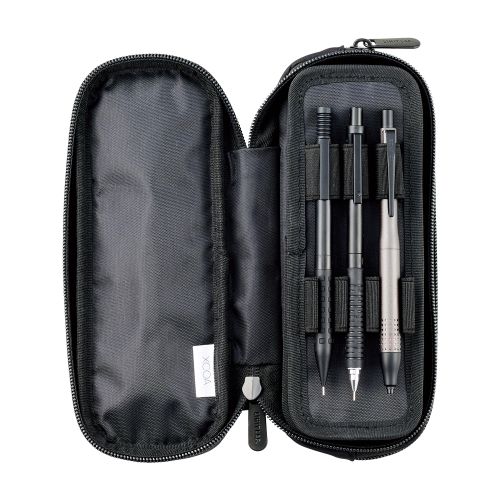 ペンホルダーは最大6本収納可能です。ポーチ型のファスナーポケットの内側にメッシュポケットが付いており、小物を仕分けて収納ができます。ペンホルダーについているクッションループはペンを隠さず保護ができます。ペンホルダープレートは本体から独立しているため、自由度の高い使い方ができます。