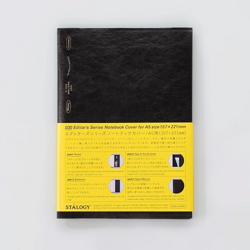 A5サイズの365デイズノート・1/2イヤーノートに合うノートカバーです。右ポケットが外側に出せるため、筆記の邪魔にならず、ノートに書き込むことができます。ノートと一緒に使う小物を収納できるポケット付きです。バッグなどに使用され、水にも強く、環境に配慮した紙素材を採用しています。より本革のようなレザー調のブラックで、ビジネスシーンにもぴったりです。あなたの大切なノートを傷や汚れから守ります。 【検索ハッシュタグ】#ニトムズ#STALOGY#スタロジー#ノートカバー#ノートブックカバー#手帳カバー#スケジュール帳カバー#A5#A5サイズ#ビジネス#紙#ブラック#黒