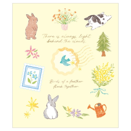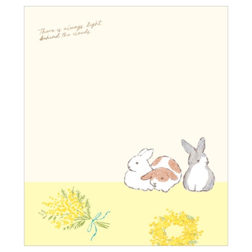 My mood -マイムード- 明るく楽しい気分を引き出す、軽やかなカラーのシリーズ。 4柄アソートで気分にあわせて使えるメモです。 うさぎや花、ミモザなどを優しく描きました。