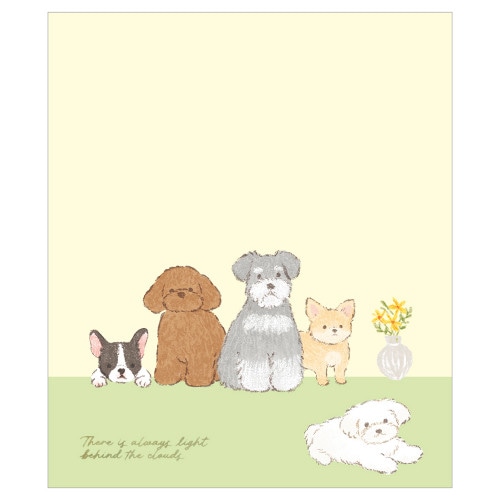 My mood -マイムード- 明るく楽しい気分を引き出す、軽やかなカラーのシリーズ。 4柄アソートで気分にあわせて使えるメモです。 犬や花などを優しく描きました。 犬の種類: チワワ、トイ・プードル、マルチーズ、フレンチ・ブルドッグ、ミニチュア・ダックスフンド、ミニチュア・シュナウザー、ポメラニアン