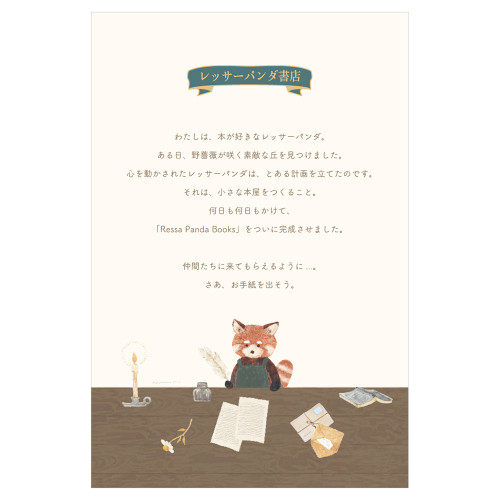 RESSA PANDA BOOKS "レッサーパンダ書店"の店主がおすすめする、4冊の物語。 まるで物語のワンシーンを贈るように…。優しい絵柄がメッセージを彩る便箋です。