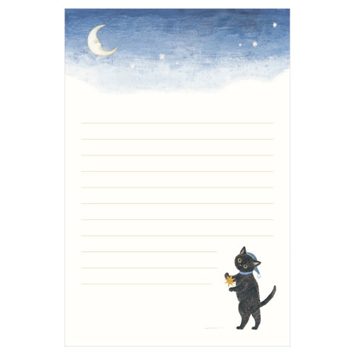 RESSA PANDA BOOKS まるで物語のワンシーンを贈るように…。優しい絵柄がメッセージを彩る便箋です。レッサーパンダ書店の店主がおすすめする物語「夜更かし猫」の4場面が描かれています。 「夜更かし猫」は、ついつい夜更かしをしてしまう猫が長い夜を楽しむお話です。【検索ハッシュタグ】#4柄アソート#ヨコ10行罫#奉書紙#和紙#扉絵付#物語#ファンタジー#黒猫#どうぶつ#かわいい#おしゃれ#本#手紙#夜