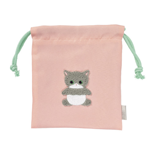 Omlien ふわふわモコモコなサガラ刺繍がポイントになった巾着です。小物の収納にちょうどよいサイズ感で、バッグの中身の整頓に活躍します。 Omlien(おむりあん)とは、惑星OM(おーえむ)からやってきた、おむつをはいたエイリアン。 グレー猫のようなキャラクター「よんな」:いたずらが好き。怖がりでもあり、よく毛布にくるまっている。ミルクの適温に厳しい。おむつはXSサイズ。