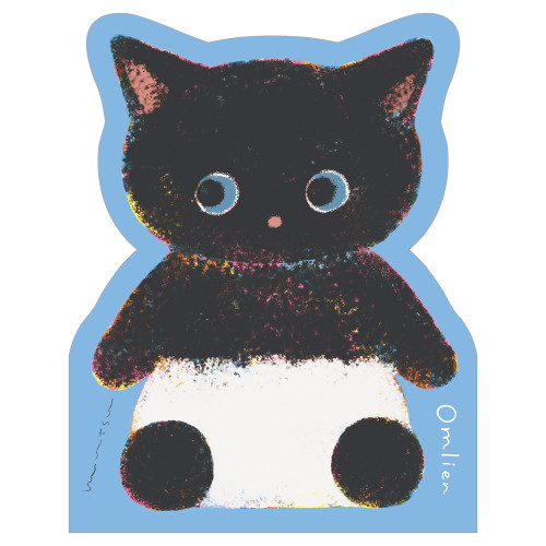 Omlien 可愛くインパクト充分なダイカットメモ。 ちょこっとひとこと書きたい時に便利なサイズです。 Omlien(おむりあん)とは、惑星OM(おーえむ)からやってきた、おむつをはいたエイリアン。 黒猫のようなキャラクター「むつ」:しっかり者で、みんなのまとめ役。音楽が流れるとついつい横揺れでノってしまう。おむつはSサイズ。