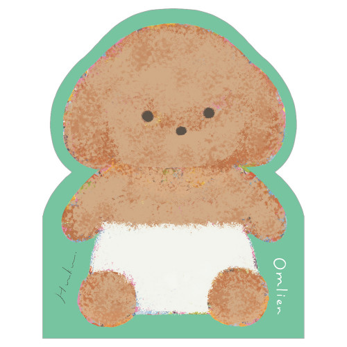 Omlien 可愛くインパクト充分なダイカットメモ。 ちょこっとひとこと書きたい時に便利なサイズです。 Omlien(おむりあん)とは、惑星OM(おーえむ)からやってきた、おむつをはいたエイリアン。 トイプードルのようなキャラクター「ふく」:あまえんぼうで、感情表現が豊か。シャボン玉や風船を見ると、吹き飛ばしたくなる。おむつはMサイズ。