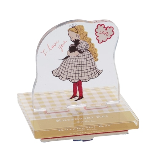 くらはしれいさんのイラストがデザインされた、アクリルスタンド型スタンプです。アクリルスタンドの台座にスタンプ印面がついているので、飾っても捺しても楽しめる仕様。少女と猫がちょこんと佇む、デスクにやさしい空気を添えるアイテムです。ノートやスケジュール帳のデコレーションにぴったり。線画デザインなので、色を塗って自分だけのアレンジも楽しめます。 ※インクをつけるときや捺すときは、持ち手ではなく台座部分を持って押してください。