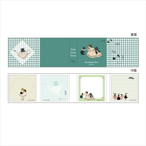 開くたびに楽しい、ちいさな付箋セットです。折りたたまれた台紙をパタパタと開くと、4柄のミニ付箋がずらり。45mm四方の小さなサイズで、メッセージや手帳、TODOメモにもぴったり。ちょこっと使いにちょうどいい、持ち歩きたくなるかわいさです。くらはしれいさんの「ねこふんじゃった」という作品をベースに、緑色×黒猫で上品に仕上げました。