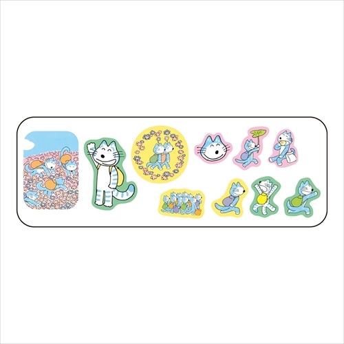 「11ぴきのねことふくろのなか」の絵本イラストを使用した、全10種・計40枚入りのシールセットです。マスキングテープ素材で、貼ってはがせる便利な仕様。ほんのり透ける質感を楽しめるため、手帳やノートのデコレーションはもちろん、透け感を活かしたオリジナルアレンジを楽しめます。