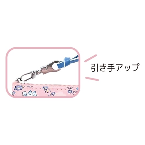 「11ぴきのねことふくろのなか」に登場する、花々に囲まれたねこたちのイラストをもとにオリジナルでデザインしたポーチです。ちょっとした小物を入れるのに便利なサイズで、毎日の持ち歩きにも活躍します。こだわりのリボン引手がアクセントになっており、内側には小物整理に便利なポケット付きです。