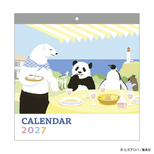 ヒガアロハさんのコミックス「しろくまカフェ」のキャラクターが散りばめられた、書き込みスペースが広い月間カレンダー。