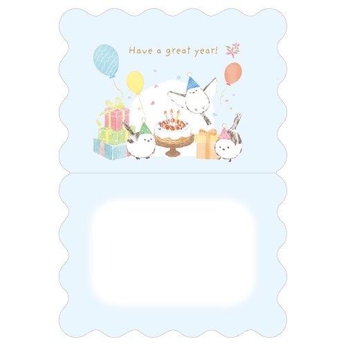 My mood -マイムード- 明るく楽しい気分を引き出す、軽やかなカラーのシリーズ。 プレゼントに添えるのにぴったりな、ミニサイズのバースデーカードです。 シマエナガやケーキ、風船、プレゼントを優しく描きました。※郵送できません