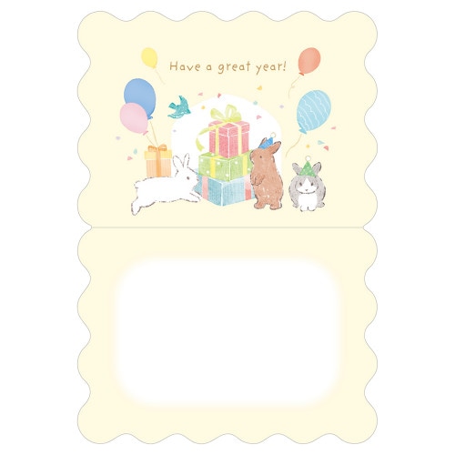 My mood -マイムード- 明るく楽しい気分を引き出す、軽やかなカラーのシリーズ。 プレゼントに添えるのにぴったりな、ミニサイズのバースデーカードです。 うさぎやケーキ、風船、プレゼントを優しく描きました。※郵送できません