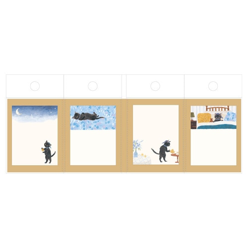 RESSA PANDA BOOKS 物語を楽しむように使う、ブック型のふせんです。レッサーパンダ書店の店主がおすすめする物語「夜更かし猫」の4場面が描かれています。 ちょっとしたメモやひとことメッセージを伝えるときに。 「夜更かし猫」は、ついつい夜更かしをしてしまう猫が長い夜を楽しむお話です。【検索ハッシュタグ】#4柄アソート#ブック型#メモ#メッセージ#ひとこと#物語#ファンタジー#黒猫#どうぶつ#かわいい#おしゃれ#手帳#デコレーション