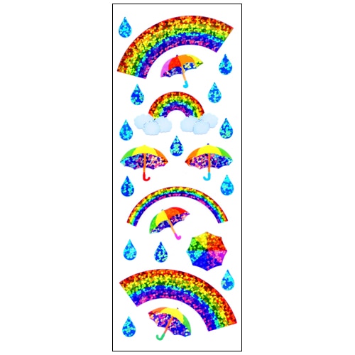 シンプルで使いやすいキラキラした素材の虹と傘のシール。