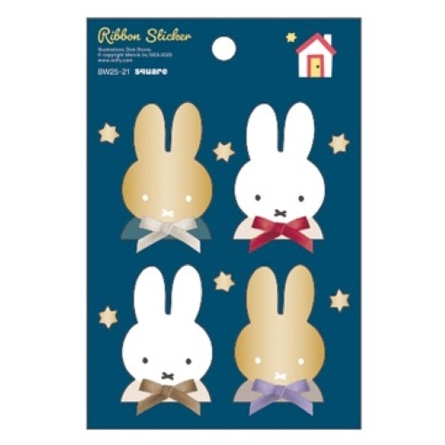 立体的なリボンパーツと金箔が特徴のダイカットシールです。厚みのある素材、大きめのサイズで存在感抜群!プレゼントやお手紙のデコレーションにぴったりです。シールサイズ:ミッフィー/30mm×45mm 星/7mm×7mm【検索ハッシュタグ】#シール#リボン#ラッピング#ミッフィー#miffy#MIFFY#スクエア#square