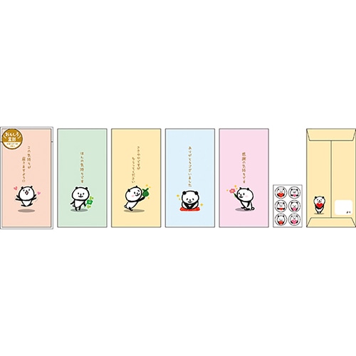 お札を折らずに入れられる金封タイプのぽち袋です。猫・柴いぬ・パンダ・ハシビロコウの4柄入りで、おもしろい一言がクスッと笑える♪お年玉やお小遣いにもぴったりです。