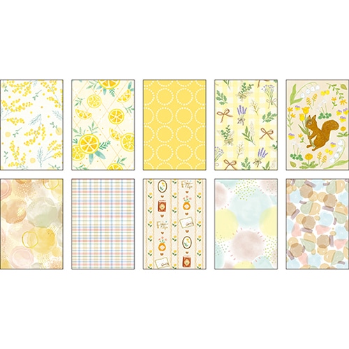 透け感がかわいい、トレーシングペーパー素材のメモです。10柄×各3枚入りで、色々なデザインを楽しめます。手帳のデコレーションやコラージュの素材としてもお使いいただけます。