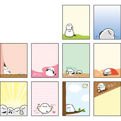 10柄×各5枚入りのメモ帳です。その日の気分や使い方に合わせて好きな柄を選んで使えます。