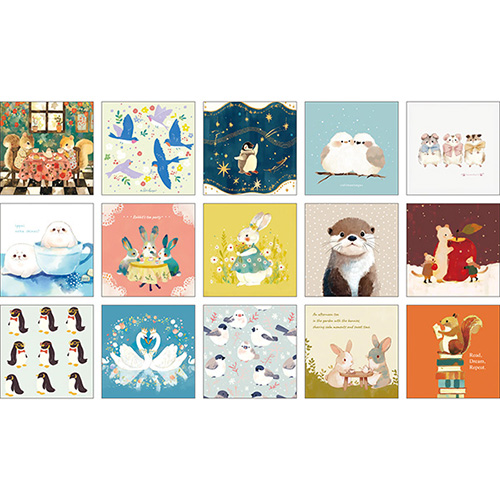 いろんな動物のアートを楽しめるましかくメモ帳です。15柄×各2枚入りで好きなデザインを選んで使えます。裏面はシルバーの方眼になっているのでメモ書きにも便利です。