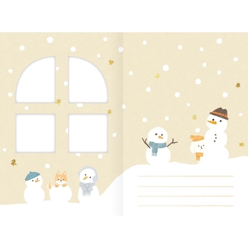 カードを開くと景色も広がる、新商品の窓あきメッセージカードが登場!窓からのぞくやさしい世界に心ときめくメッセージカードです。箔押し印刷がキラッと光って、冬のどんな場面にもぴったりで、想いを添えられます。【検索ハッシュタグ】#古川紙工#冬#メッセージカード#カード#雪だるま