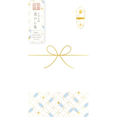 美濃和紙を使用した箔押しのし袋。七宝・亀甲・麻の葉・青海波など、日本の伝統文様を上品にあしらいました。金箔の輝きと和紙の風合いが調和し、より格調高く演出します。【検索ハッシュタグ】#古川紙工#紙福のひととき#美濃和紙#のし袋#七宝文様