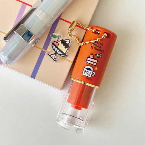 ゴールドチェーンと可愛いアクリルチャーム付のネーム印です。本体側面にはテーマに合わせたデザイン、ネーム印面もericデザインがお選びいただけます。印面はQRコードから簡単申込み。(出荷は国内限定)