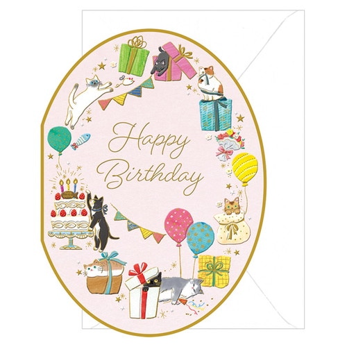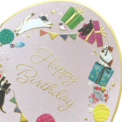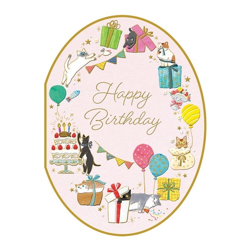 気持ちもカタチも、まぁるく届けるダイカットのカード。ほっこりする可愛い動物たちは大切な人へのメッセージにピッタリです。バースデイ ネコ
