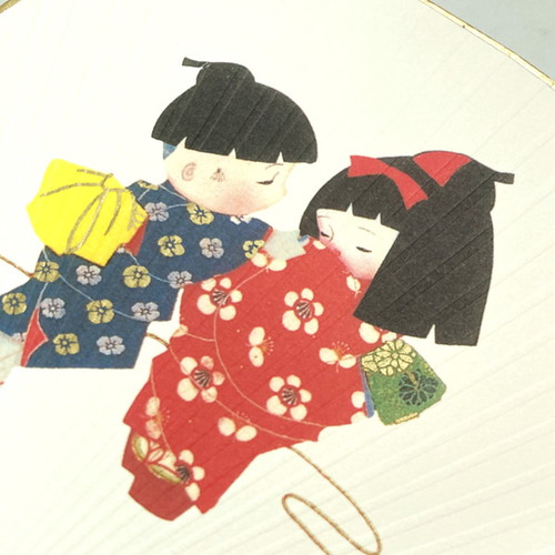 海外へのお土産にも最適な童柄のうちわ型カードです。定形封筒付き 金シルク印刷