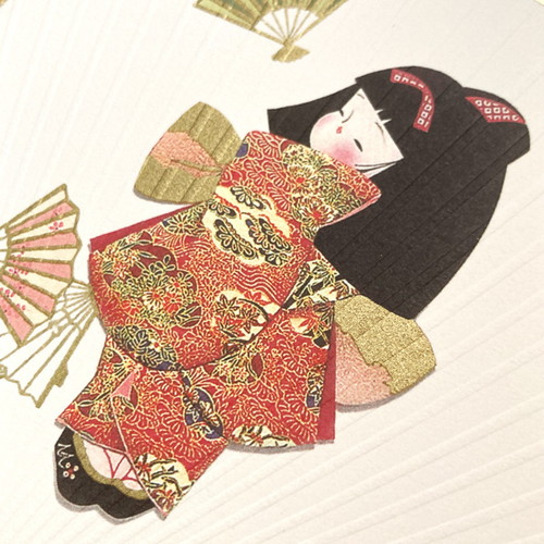 海外へのお土産にも最適な童柄のうちわ型カードです。定形封筒付き 金シルク印刷