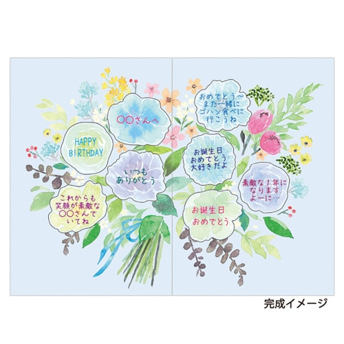 相手を選ばず、どんなシーンでも使いやすい定番の花柄です。様々な形の花のシールを貼ってブーケを完成させていくような楽しいカードです。 さわやかなブルーはピンクが苦手な方や、男性にも贈りやすくおすすめです。シール8片付き【検索ハッシュタグ】#チキュウ#寄せ書き#色紙#少人数#花柄