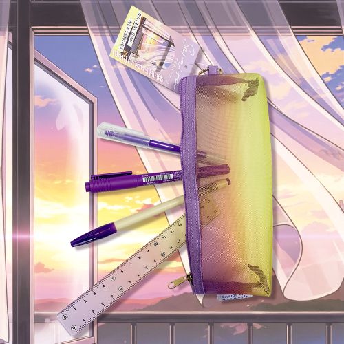 メッシュ素材で軽く、収納しやすいグラデーションカラーのペンケース。シャープペン・消しゴム・ハサミ・のり・17cm定規まで収納可能。メッシュ素材の軽いペンケース【検索ハッシュタグ】#新商品#そら色#ペンケース#メッシュ素材#軽い#学用品