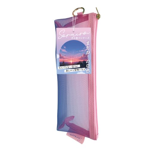 メッシュ素材で軽く、収納しやすいグラデーションカラーのペンケース。シャープペン・消しゴム・ハサミ・のり・17cm定規まで収納可能。メッシュ素材の軽いペンケース【検索ハッシュタグ】#新商品#そら色#ペンケース#メッシュ素材#軽い#学用品