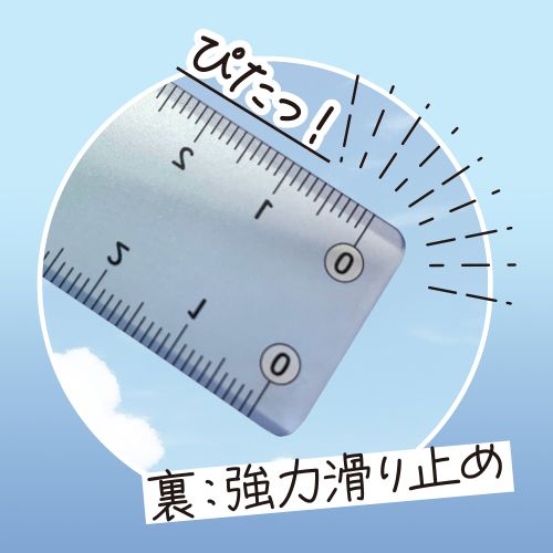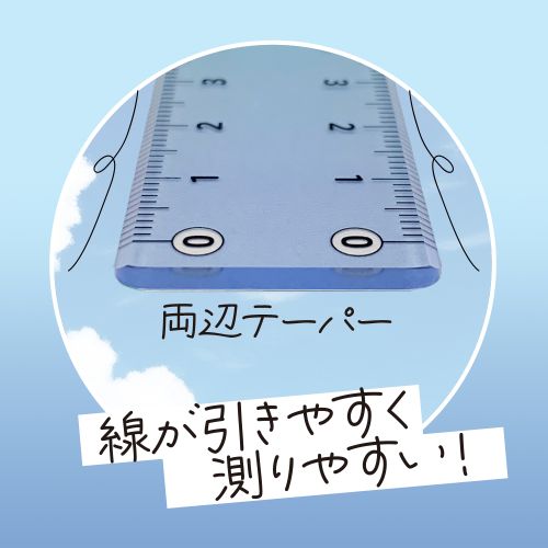 左右利き手対応目盛・超強力滑り止め・両面テーパー付き。表面は光沢クリア、裏は強力滑り止め加工が施されており、線が引きやすい。ユニバーサルデザイン文字で、目盛りが読みやすい。【検索ハッシュタグ】#新商品#そら色#定規#17cm#学用品#グラデーションカラー#滑り止め加工#両利き対応
