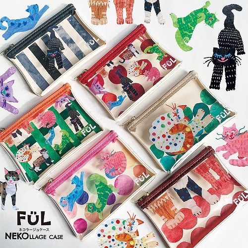 塗って切って貼って・・・ひとつひとつコラージュから生まれたネコちゃん達で、6柄すべてオリジナルのデザインポーチとなります。ファスナー色も異なり、小さな小物を入れるのにピッタリです。