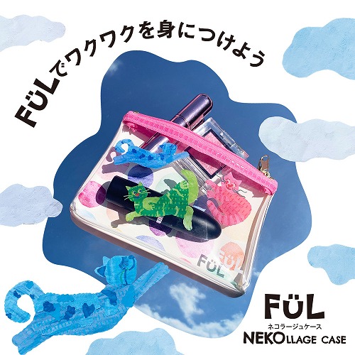 塗って切って貼って・・・ひとつひとつコラージュから生まれたネコちゃん達で、6柄すべてオリジナルのデザインポーチとなります。ファスナー色も異なり、小さな小物を入れるのにピッタリです。