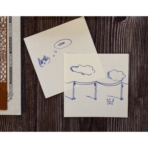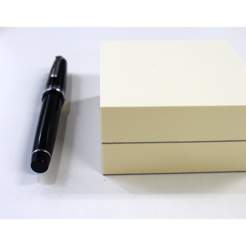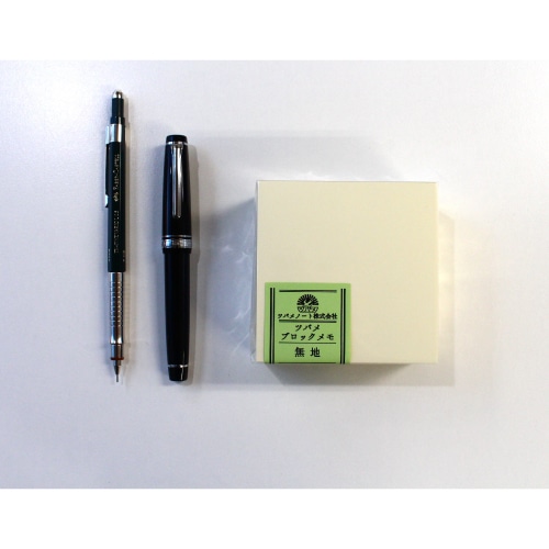 ツバメノートのブロックメモです。天糊メモなので一枚ずつはがしながら使うことができます。85㎜×85㎜のコンパクトなサイズで、デスクや電話の横などのちょっとしたスペースに置いたり、手帳やノートと併用するのに使いやすいサイズ感で厚みは約43㎜です。本文には目に優しくなめらかな書き心地のツバメ中性紙クリームフールスを使用しています。本文枚数は400枚で、200枚ごとに仕切りのボール紙(厚紙)が入っているので耐久性もあり、使用枚数の目安にもなります。用途に合わせて半分に切り分けて200枚のブロックメモ2冊として使うこともできます。本文内容は無地で、罫線を気にせず、自由にメモをとることができます。イラストを添えたり、図やレイアウトを考える際にもお使いいただけます。罫線にとらわれず、「線がない方が良い」という方にオススメです。無地・無罫/400枚