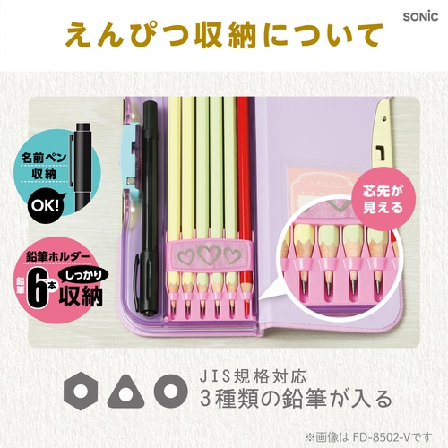 #ソニック 筆箱 えんぴつチェック両面筆入 Wシート補強 うかサポ バイオレット FD-8228-V