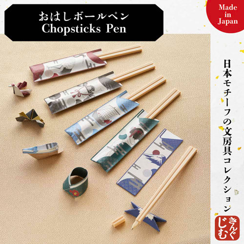 「日本」らしさを感じられるデザインの文房具シリーズ「Japan Design Collection」が登場。「おはしボールペン/Chopsticks Pen」は割り箸をモチーフにしたボールペン。日本の食文化を表現したユニークな見た目が特長で、箸袋では折り紙が楽しめます。【検索ハッシュタグ】#Japan Design Collection#JAPAN#japan#souvenir#stationary#Ninja#Mt. Fuji#Sushi#Sakura#お土産#日本土産#日本#JAPAN#日本デザイン#おはし#箸#ボールペン#筆記具#おはしボールペン#お箸ペン#おもしろ#割り箸#箸袋#箸置き#箸置#折り紙#origami#富士山#舞妓#着物#船#舟#兜#かぶと#鶴#折り鶴